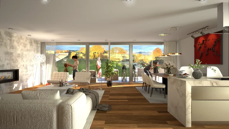 Im Innenbereich helfen Visualisierungen bei Kaufobjekten, die Raumaufteilung, die Ausrichtung des Hauses un die Grosse der Räume besser zu verstehen.