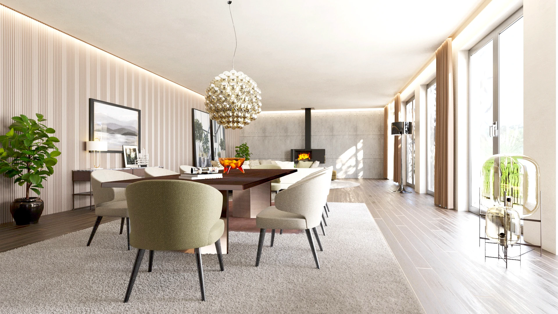 Visualisierungen vom Innenbereich ermöglichen Ihrem Kunden, neue Ideen in sehr kurzer Zeit übermitteln.